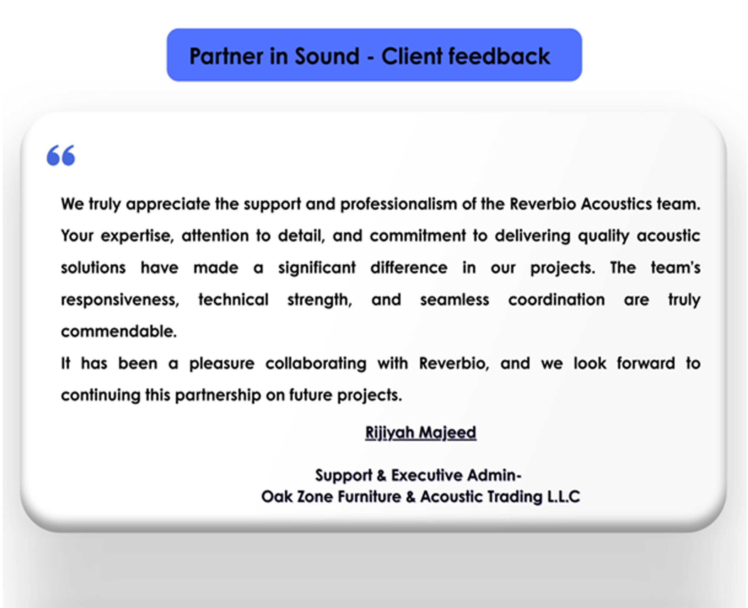 Reverbio Acoustic, we specialize in shaping the acoustic quality of spaces to meet the highest standards of clarity, comfort, and control. Whether you're designing a performance venue, a workplace, a residential development, or a critical listening environment, we bring expertise, creativity, and technical precision to every project.